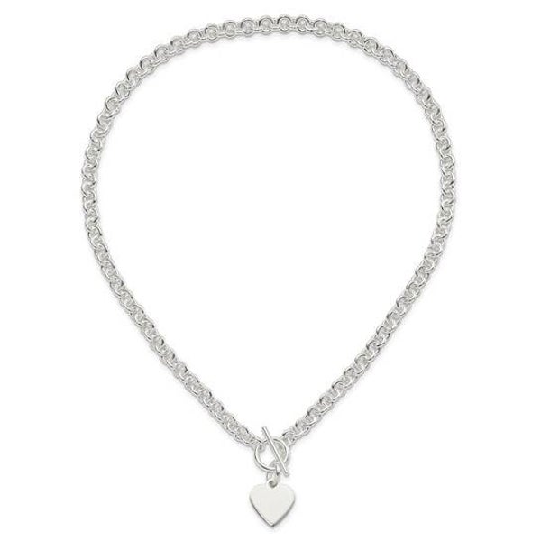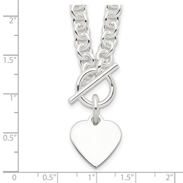 Personalized Hand Engraving 925 Sterling Silver Heart Disc on Fancy Link Toggle 18in Necklace and bracelet 7.75in.
